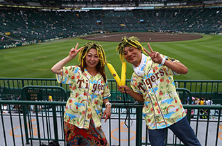 お越しいただいた皆様には、「虎ドレッド」をかぶってタイガースへエールを送っていただきました!