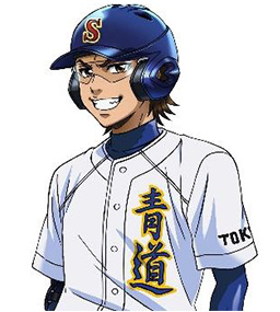 | 天才捕手・御幸と出会い、青道入りを決めた左腕。独特のフォームとクセ球、そして常に前向きな姿勢は、仲間たちの信頼を集めていく。 | 全国にその名を轟かせる天才捕手で、その存在が沢村や降谷を青道へと導いた。結城の跡を継ぎ、新チームでは主将に抜擢された。 |