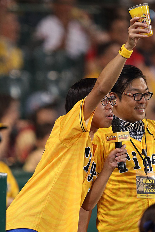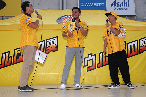 25日(水)は、次長課長河本準一さんが登場!試合前にはタイガースOB狩野恵輔さんとのトークショーに出演いただき、ウル虎ビアフェスタを盛り上げてくださいました!またこの日は広島に6-3で勝利!ヒーロー選手と記念撮影を行いました。