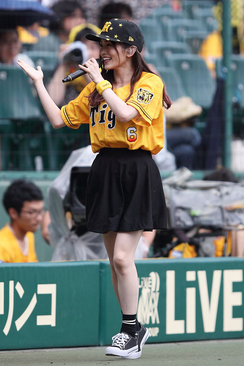 山本彩さんは試合前のグラウンドに登場いただき、NMB48の「ワロタピーポー」を披露いただきました!また5回裏終了時には「みんなで六甲おろし」を、スタンドの皆さんと一緒に生歌唱!大いに盛り上がりました!