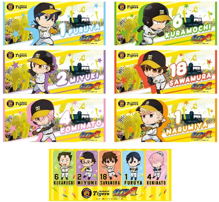 ![]() (1)阪神タイガース×ダイヤのA コラボフェイスタオル 各1,500円(全7種) | ![]() (2)阪神タイガース×ダイヤのA コラボクリアファイル 600円(2枚セット) | |
