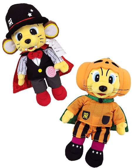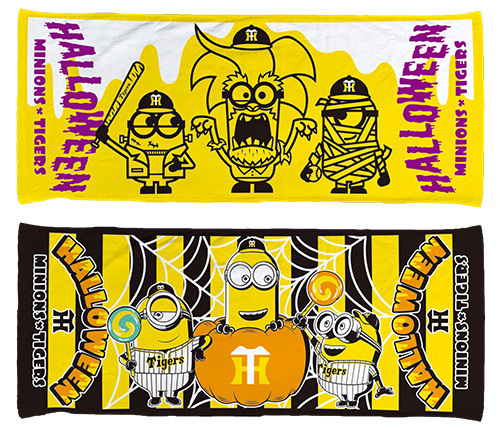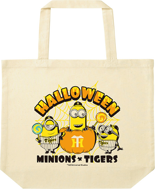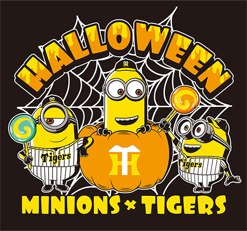 ハロウィンの世界観で「パンプキンやモンスターに扮した大人気キャラクター『ミニオン』」と、プロ野球チームで唯一タイガースがコラボレートした限定デザインの、Tシャツ、トートバッグ、マグカップ等を販売します。また、トラッキー・ラッキー・キー太がパンプキンや魔法使いに仮装した愛らしいデザインのぬいぐるみも登場!