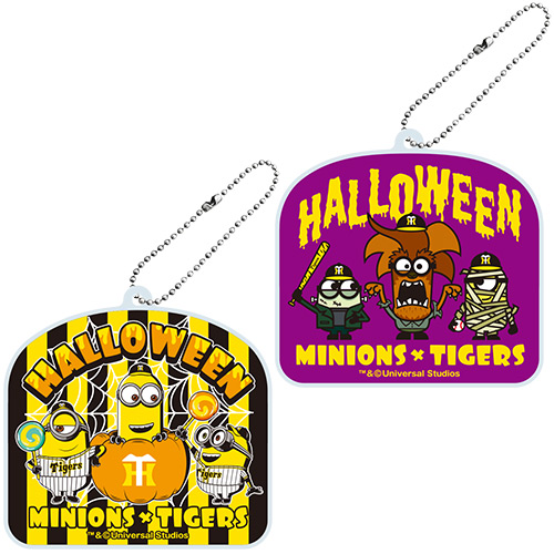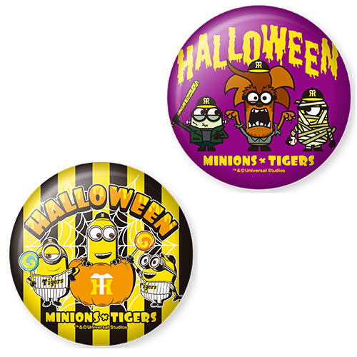 | MINIONS×タイガース アクリルチャーム 各840円 | MINIONS×タイガース ドデカ缶バッヂ 各540円 |