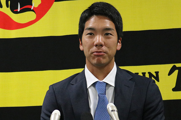 26日(月)、小野泰己選手が球団事務所での契約更改終了後に会見を行いました。