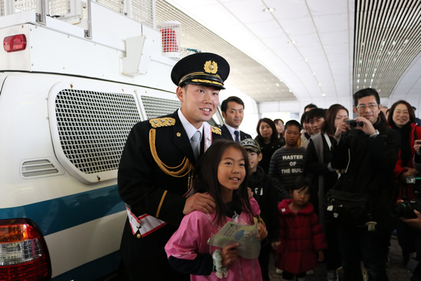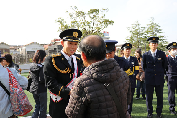 また、発隊式終了後、集まった子ども達に交通安全のクイズを出題したり、じゃんけん大会で勝った子ども達に記念グッズをプレゼントするなどし、ららぽーと甲子園では、市民の皆さんに交通安全、防犯を呼びかけました。