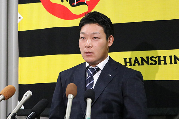 4日(火)、大山悠輔選手が球団事務所での契約更改終了後に会見を行いました。