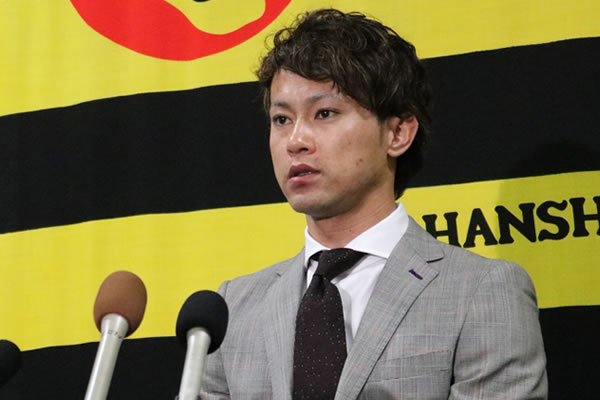 4日(火)、上本博紀選手が球団事務所での契約更改終了後に会見を行いました。