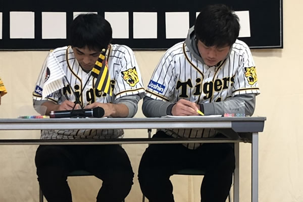 13日(木)、桑原謙太朗選手と守屋功輝選手が泉大津市の『社会福祉法人穴師福祉会ワークショップかりん』を訪問しました。