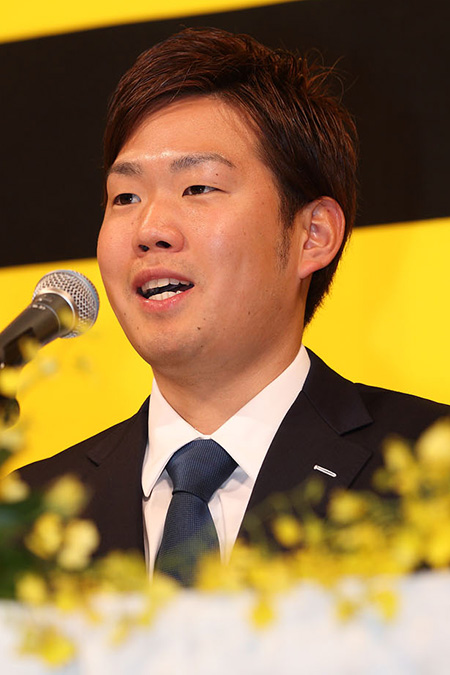 これから阪神タイガースにお世話になります西です。たくさんの方が応援に来ていただいて、甲子園を熱くして、優勝目指して頑張りますので、応援よろしくお願いします。