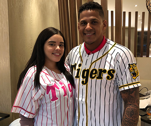 日本でプレーする機会を与えてくれた阪神タイガースに感謝したいと思います。神様がタイガースに導いてくれたのだと思います。自分の持っているものをすべて出し、ベストを尽くしてタイガースに貢献したいと思います。Go Tigers!
