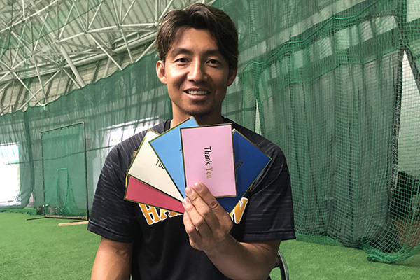 こちらは鳥谷選手が一枚一枚に直筆でメッセージとサインを入れたスペシャルなメッセージカードとなっておりまして、今回はそのメッセージカードにインスタントカメラで撮影した写真も添えて、抽選で5名の方にプレゼントいたします!