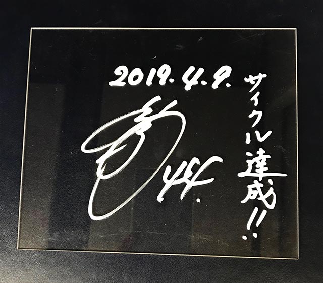 その記念すべき試合のヒーロープレートにご本人に「サイクル達成!!」と書いていただいたアクリルプレートを、公式モバイルサイトにご登録いただいている皆様を対象に、抽選で1名様にプレゼントいたします!