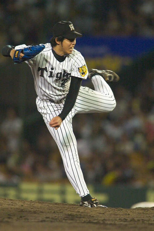 茨城県立水戸商業高校から1997年ドラフト2位で阪神タイガースに入団。2002年から2006年にかけて5年連続二桁勝利を挙げており、2003年にシーズン20勝、2004年にノーヒットノーランを達成するなど阪神タイガースのエースとして2度のリーグ制覇に貢献。