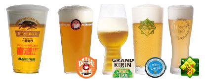 アサヒスーパードライ、アサヒドライプレミアム豊醸、隅田川ブルーイング各ビール(ゴールデンエール・琥珀の時間)、スーパードライエクストラコールド、キリン一番搾り、一番搾りフローズン生、一番搾りプレミアム、タップマルシェ各クラフトビール他