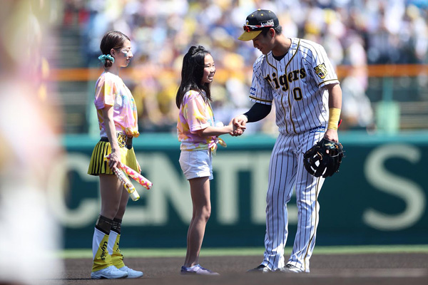 | 女子フィギュアスケート界のTORACOでもある三原舞依さんと坂本花織さんが登場し、ナイスピッチングを披露。 | スタメン選手を、Tigers Girlsと一緒に各ポジションでお出迎え。 |