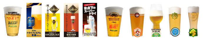 アサヒスーパードライ、アサヒドライプレミアム豊醸、隅田川ブルーイング各ビール(ゴールデンエール・琥珀の時間)、スーパードライエクストラコールド、キリン一番搾り、一番搾りフローズン生、一番搾りプレミアム、タップマルシェ各クラフトビール他
