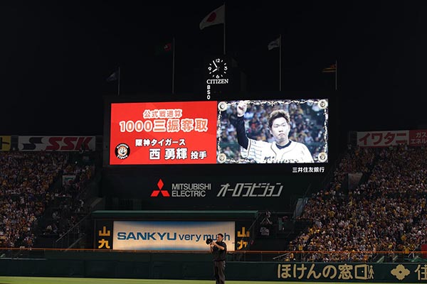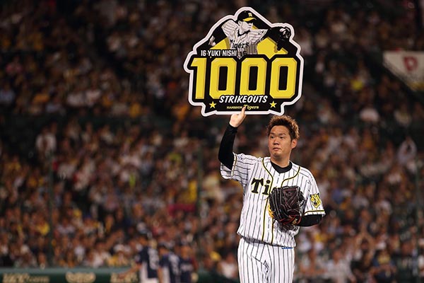 21日(金)の阪神甲子園球場での対埼玉西武ライオンズ戦において、西勇輝選手が1000奪三振記録を達成いたしました。
