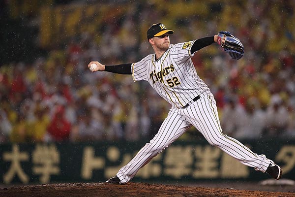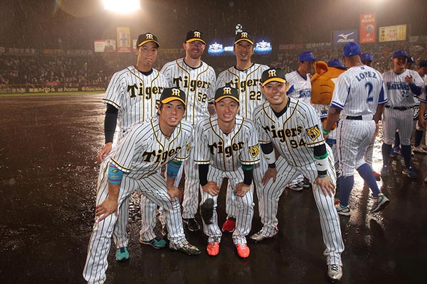 第二戦は阪神甲子園球場で開催。近本選手、原口選手、梅野選手がスタメン出場。近本選手は初回、先頭打者ホームランで先制。2回裏には原口選手、梅野選手が2者連続でホームランを放ちました。5回には3番手に青柳選手、8回にはジョンソン選手、9回には藤川選手が登場し、投じた12球全て直球勝負で球場を沸かし、見事零封で抑えました。