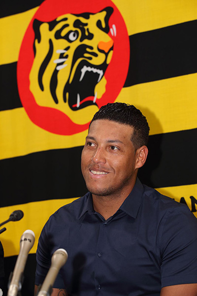 2017年のWBCでは、ベネズエラ代表を務めたとおり、非常に運動能力の高い選手です。内外野ともに守ることができ、ユーティリティーの高いプレーヤーでございます。またパワーを兼ね備えたスイッチヒッターでもございます。MLBでの経験も豊富ですし、本人も日本にやってくることに興味を持っておりますし、阪神タイガース2019年の残りシーズンの大きな力になってくれることを期待しています。皆様どうぞ宜しくお願いいたします。
