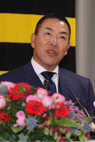 選手・指導者としての力量は、皆さんよくご存知のとおりでございます。今回入団するに際して名古屋の方で、タイガースの黄色い血に青色を加えて、新たな化学反応を起こしたいと語っていただいておりました。黄色に青色を混ぜると緑色、甲子園球場のシンボルカラーになります。本拠地・甲子園球場に相応しい野球を矢野監督とともに明るく厳しく展開してくれることを期待しております。