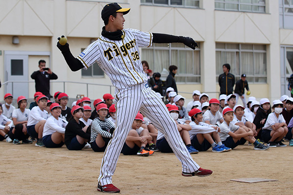 阪神タイガースではスクール以外でも、学習指導要綱の中で『ベースボール型授業』が必修となっている小学校3・4年生の体育の授業にタイガースアカデミーコーチを派遣し、小学校の先生に代わって授業を行い、野球に触れ合う機会をもってもらう活動をしております。