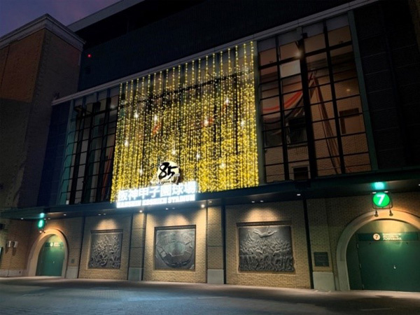シンボルマークは2020年シーズン終了まで、設置いたします(ただし、高校野球大会開催期間中を除く)。また、イルミネーションは2020年3月中旬まで、期間中の17:00~22:00に点灯いたします。