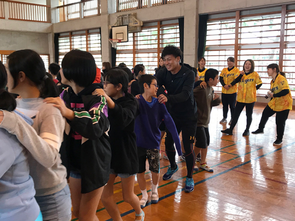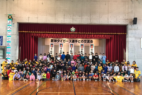 30日(木)、近本光司選手、木浪聖也選手、熊谷敬宥選手、島田海吏選手、植田海選手が宜野座村立松田小学校を訪問しました。