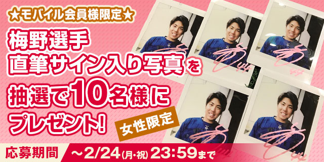 応募期間は24日(月・祝)までとなります。まだ球団公式モバイルサイトにご入会いただいていない皆様は、ぜひこの機会にご入会ください!