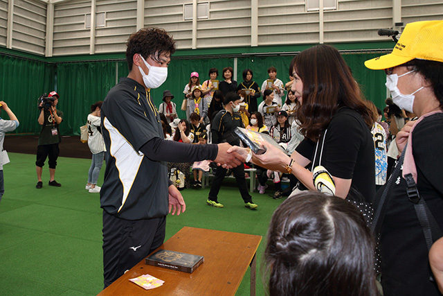 14日(金)、バレンタインデーの今日、沖縄・宜野座キャンプにて、現地抽選で当選された50名の女性ファンの方々に、熊谷敬宥選手・植田海選手から逆チョコプレゼントイベントを実施しました。