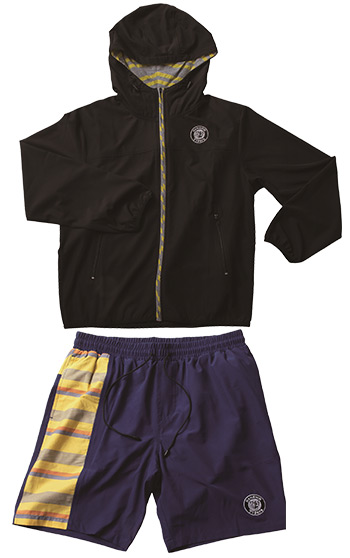 | 夏のデザインジャージ 各6,000円(税抜) | 水陸両用パーカー&ハーフパンツ (上) 6,900円、(下)4,546円(税抜) | |