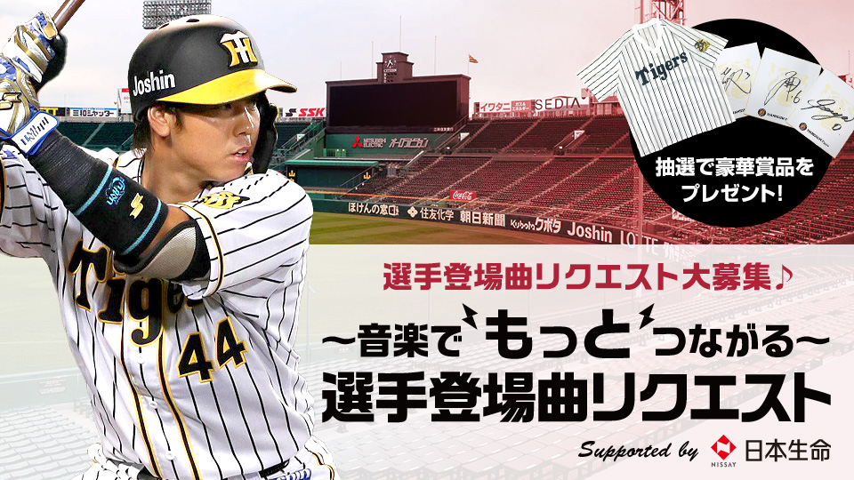 「ファンともっと!」プロジェクトの一環として、7月21日(火)~23日(木)阪神甲子園球場で行われるJERAセ・リーグ公式戦対広島戦において『~音楽で“もっと”つながる~ 選手登場曲リクエスト Supported by 日本生命』を開催いたします。