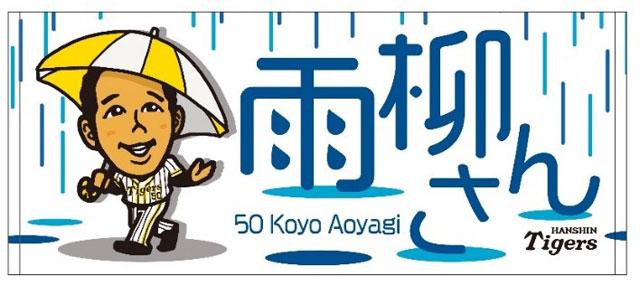 阪神タイガース屈指の雨男である青柳選手は登板日に天候不良になることが多く、チームメイトから「雨柳さん」と呼ばれており、傘を差した青柳選手のイラストがデザインされたフェイスタオルとしてこのたび商品化いたしました!