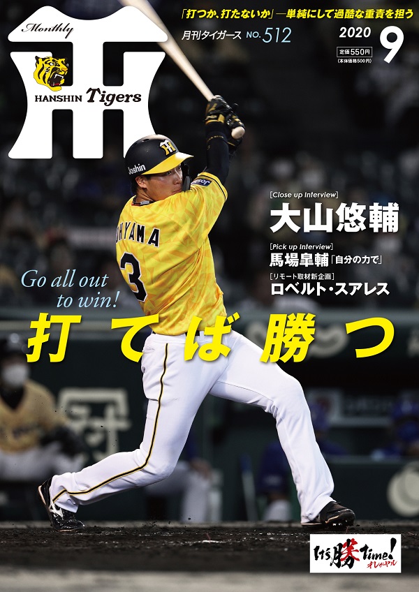 月刊タイガース9月号の表紙&巻頭インタビューは大山悠輔選手。今季、開幕こそスタメンから外れましたが、7月に入ってからは四番を任されるなど、主軸としてチームにとって欠かせない存在感を発揮しています。またサイドインタビューには、今季苦しい台所事情が続いていたリリーフ陣をしっかりと支えている3年目、馬場皐輔投手が登場。さらに新企画、選手のプライベートトークでは、今季からタイガースに加入し、現在守護神を務めているロベルト・スアレス投手が、興味深い素顔をのぞかせています。
