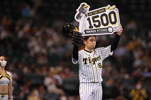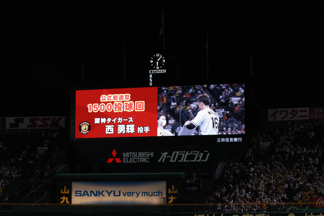 2日(金)の阪神甲子園球場での読売ジャイアンツ戦1回表において、西勇輝選手が公式戦通算1500投球回記録を達成いたしました。