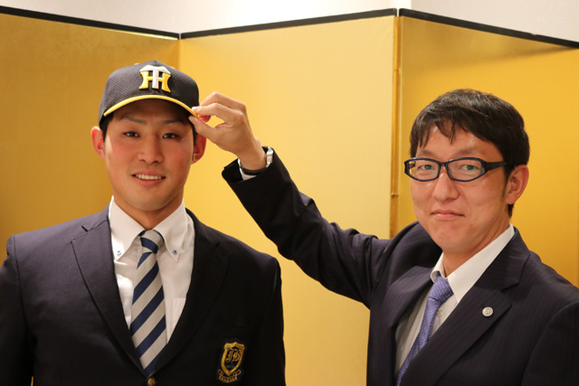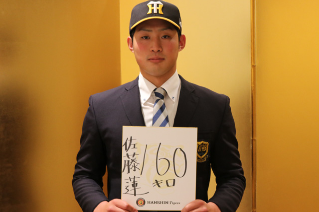 仮契約を終えて、阪神タイガースでプレーするという実感がすごく湧いてきました。パワーでどんどん押していくスタイルが自分の魅力だと思っているので、ストレートで真っ向勝負ができるようなピッチャーになりたいです。160キロを目指します!