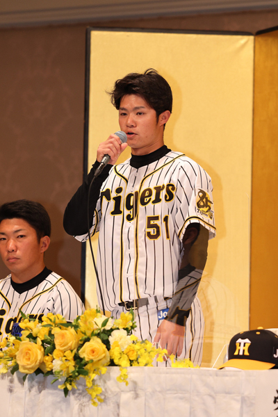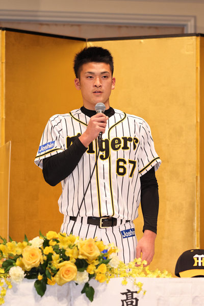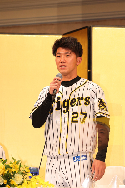 しっかり結果を残して、阪神または日本を代表するような選手になれるように頑張ります。よろしくお願いします。