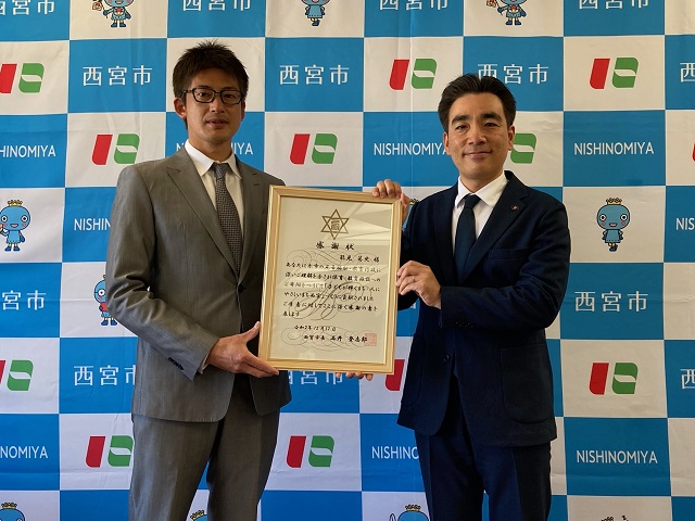 能見選手へは、西宮市の石井登志郎市長より感謝状が送られました。