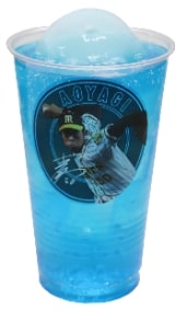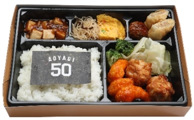 | 地元の横浜にちなんで、中華弁当で初参戦!青柳選手の大好物であるエビチリの他にも、麻婆豆腐、春雨、揚げしゅうまい、春巻き等、豊富なラインナップが魅力のお弁当です! | 青柳選手の好きな青色をイメージし、ベースのピーチ味にブルーキュラソーで青く染めた、爽やかなオリジナルチューハイが新登場!好物のラムネアイスがこだわりのポイントです! |