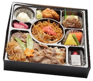 | 焼肉弁当は、濃い目のタレでガーリックチップものせてパンチ力抜群に!その分すき焼き弁当は、あっさりとした味付けにして、バランスよく仕上げしました! | 食欲やビールがすすむように、ソースは辛口でピリ辛風に仕上げました。お肉でやきそばを包んで食べるのが、肉好きの藤浪選手らしいこだわりのポイントです! |