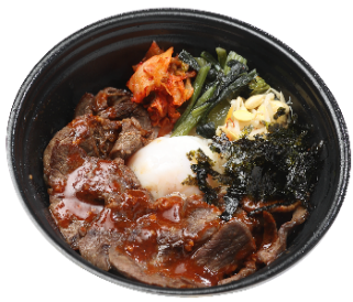 | メインのハラミ肉の味付けは2種類(焼肉のタレ・ポン酢)、監督好物のからあげも3種類の味で楽しめる豪華お弁当です! | トッピングはシンプルに、キムチ、小松菜ナムル、もやしナムル、韓国のり、半熟たまごをチョイス!さらにお肉をたっぷり入れることで、贅沢かつボリューム満点に仕上げました! |