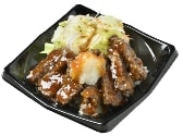 | 大山選手の好物である「すき焼き」をご飯の上に贅沢に盛り付け、その他にも好物である、焼きそば、ハンバーグ、からあげ等を取り入れたヨクバリ弁当です! | 「茨城出身」「お肉大好き」のキーワードから、大山選手と共に開発。茨城県産の豚肉はもちろん、味にも見た目にもこだわり抜き、パワフルな大山選手にピッタリな丼が完成しました! |
