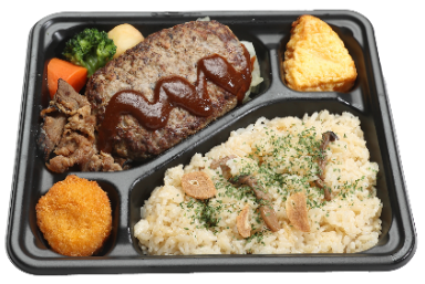 | 原口選手こだわりの「ハンバーグ」「からあげ」「有頭エビフライ」などを詰め込んだボリューム満点のミックスグリル弁当です! | 原口選手がゲン担ぎでよく食べるという「かつ丼」を再現!原口選手こだわりの出汁をしっかりと吸わせたカツと玉子は相性抜群です。 |
