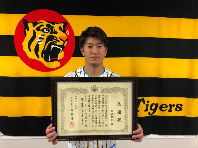 今シーズンも岩貞祐太選手が、出身地である熊本県の「野球振興」を目的にした社会貢献活動を実施いたします。2021年シーズンにおけるホールド数に応じた寄付もしくは野球道具の寄贈を行います。