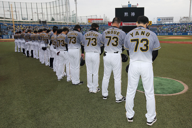 28日(日)、明治神宮野球場で行われた東京ヤクルトスワローズとの一戦は、阪神タイガースで1999年から2001年シーズンまで3年にわたって一軍監督として指揮いただいた『野村克也氏の追悼試合』として行われました。この日、監督・コーチ・選手は背番号「73番」の特別ユニフォームを着用し、戦いました。