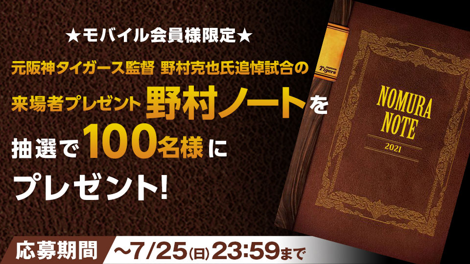 元阪神タイガース監督 野村克也氏追悼試合(6月29日(火)対ヤクルト戦)にてご来場の方に配布しました「野村ノート」を、抽選で100名様にプレゼントいたします。