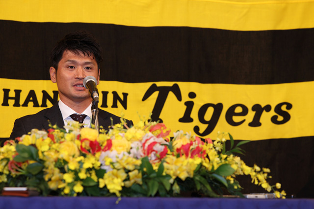 本日はお忙しい中お集まりいただき有難うございます。17年の現役生活を引退することとなりました。お世話になった3球団とファンの皆様の声援でここまで何とかやってこれたと思っています、本当に感謝しています。