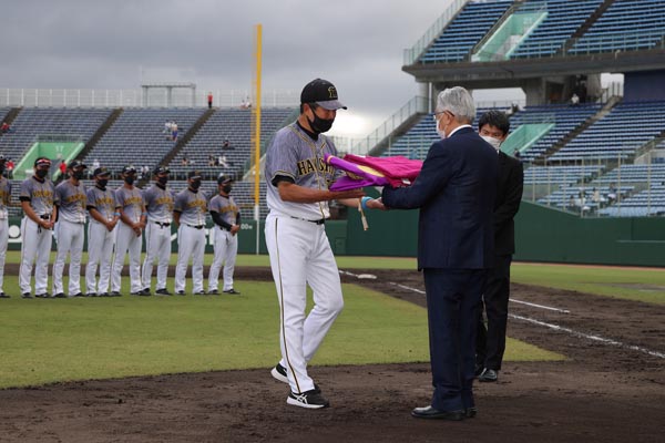 試合後には一般社団法人日本野球機構より、ペナントとチャンピオンフラッグが贈られました。