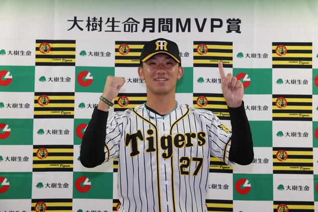 投手部門での阪神からの受賞は、2021年6月度の青柳晃洋投手以来、阪神のルーキーの受賞は、2021年5月度の佐藤輝明選手以来。