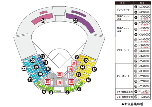 - ※上記記載エリア以外の席種は、前年度よりご継続のお客様で完売いたしましたので新規募集はございません。