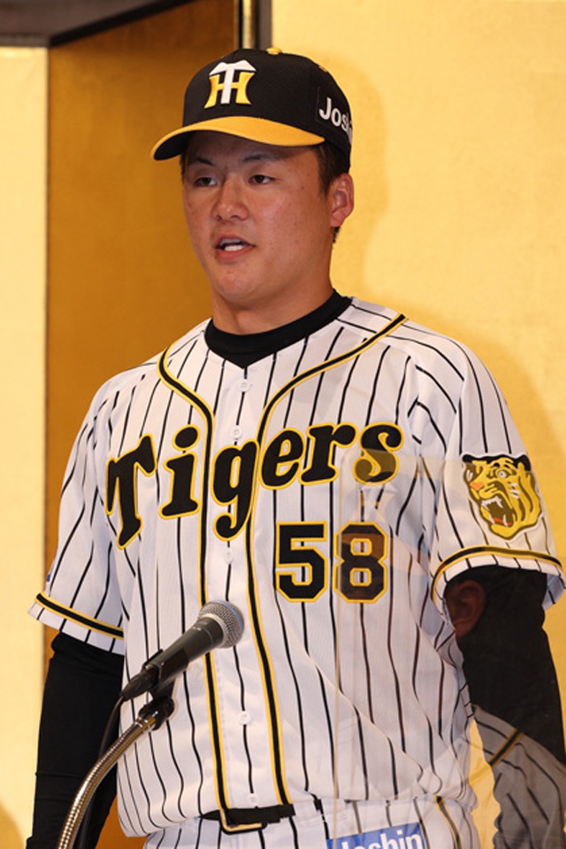 タイガースの一員として、ファンのみなさんと共に優勝を目指して戦っていけるように、しっかりやっていきたいと思いますので、応援よろしくお願いします。
